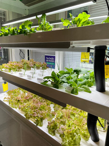 La culture des plants, alimentée par un système électrique, se fait tout simplement dans l’eau! Grâce à ce fonctionnement, on n'utilise ni terreau ni pesticide, uniquement de l’eau et de la lumière. Chaque semaine, des élèves bénévoles du Comité Vert entretiennent l’équipement et s’assurent de la bonne croissance des végétaux. Parmi les plants qu’on y cultive présentement, vous pouvez observer la progression de la bette à carde, de la moutarde, de la ciboulette, de la laitue, des tomates, du basilic, du chou chinois, du céleri et des pensées (fleurs comestibles). Vous pouvez venir leur parler, peut-être qu’elles pousseront plus rapidement !!